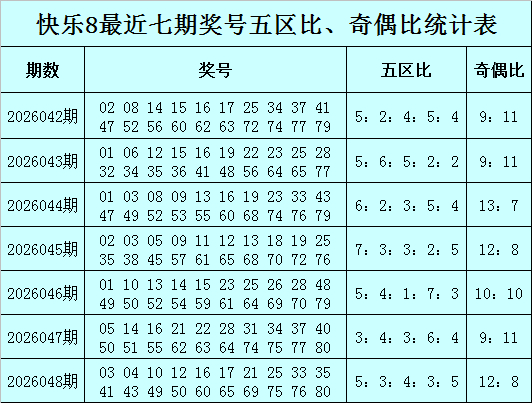 福彩快意8第2026048期开奖回归:03 04 10 12 16 17 21 25 33 35 41 43 49 50 60 65 69 75 76 80,其中奖号五区比为5:3:4:3:5,奇偶比为12:8,012路比为7:7:6。
