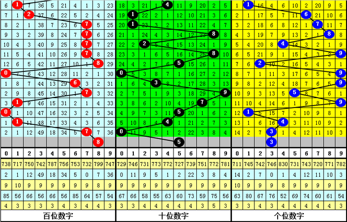 二、体彩摆设三前9期奖号开出:789-852-009-639-795-179-051-144-703,其中奖号大小比为15:12,012路比为12:9:6,奇偶比为17:10;