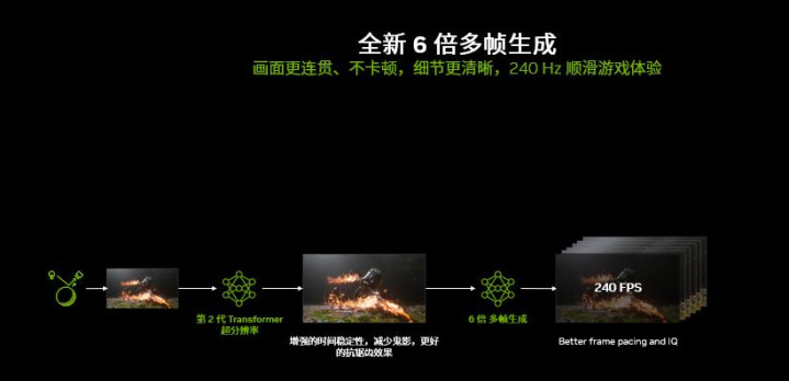 第二代Tranformer模子除了画质发扬更佳以外,目前DLSS 4.5还最高辅助6倍多帧生成,游戏每渲染1帧原始帧,AI模子会很是生成5帧,比拟之下DLSS 4仅仅渲染1帧生成3帧。由此而见,DLSS 4.5有了6倍帧生成,在濒临渲染压力雄壮的旅途光追游戏也能治丝益棼,为玩家提供电竞级体验。