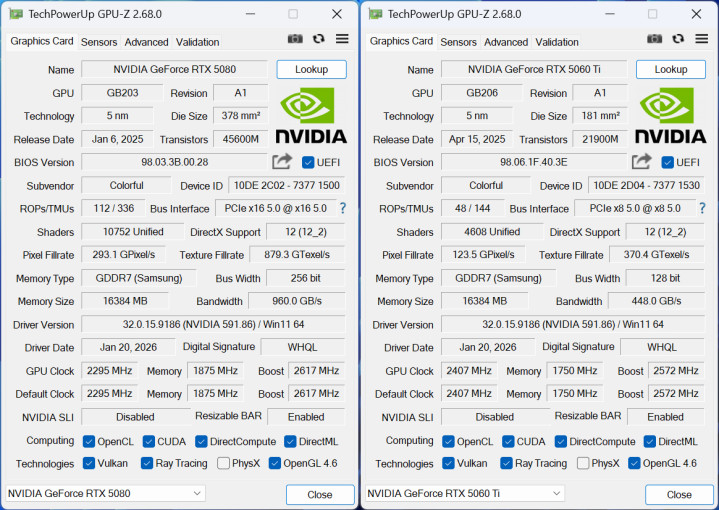 接下来是重心的性能展示部分,底下就以iGame GeForce RTX 5080 Ultra W OC 16GB和iGame GeForce RTX 5060 Ti Ultra W DUO OC 16GB这两款显卡为例,鸠集最新游戏《明日方舟:临了地》和三款电竞游戏《三角洲步履》、《Counter-Strike 2》和《丧胆条约》进行实测,装置显卡开动是最新的GeForce GameReady 591.86 WHQL。