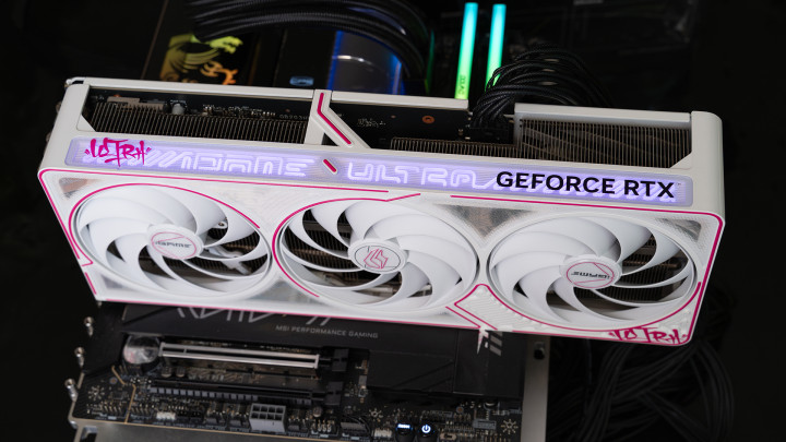 针对4K游戏体验,比较提神七彩虹这款iGame GeForce RTX 5080 Ultra W OC 16GB,外不雅操办经受了私有的Hip-Hop嘻哈律动艺术作风,合座色调基于白底+粉红点缀,导流罩上有一些渐变后果,尾部还有涂鸦纹路操办,伙同划定的弯弧线条,能给玩家带来咫尺一亮的视觉后果。