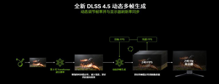 DLSS 4.5还辅助动态多帧生成模式,粗略来说该项期间可把柄游戏及时负载来疗养帧生成倍数,以便更好匹配清晰器的刷新率,这样就可以均衡帧率、画面和延伸三方面的发扬。以上两项功能目前暂未上线,NVIDIA仍是告示会在2026年春季推出。
